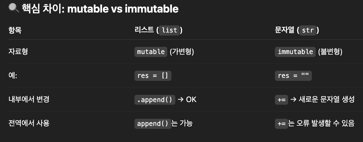 - 어떤 경우에는 빈 시퀀스를 전역변수로 선언하고 어떤 경우로는 지역변수로 선언하는 것을 계속 헷갈렸다.==> 드디어 이해했음! 문제)pw = {4:'love', 8:'smile', 6:'kiss'}res = " " def yoonHa(nums): for i in nums: i = int(i) res += pw[i] ## 자꾸 이 부분에서 에러가 떴음 return resTraceback (most recent call last): File "main.py", line 17, in print(yoonHa(nums)) File "main.py", line 9, in yoonHa res += pw[i]UnboundLocalError: local variab..