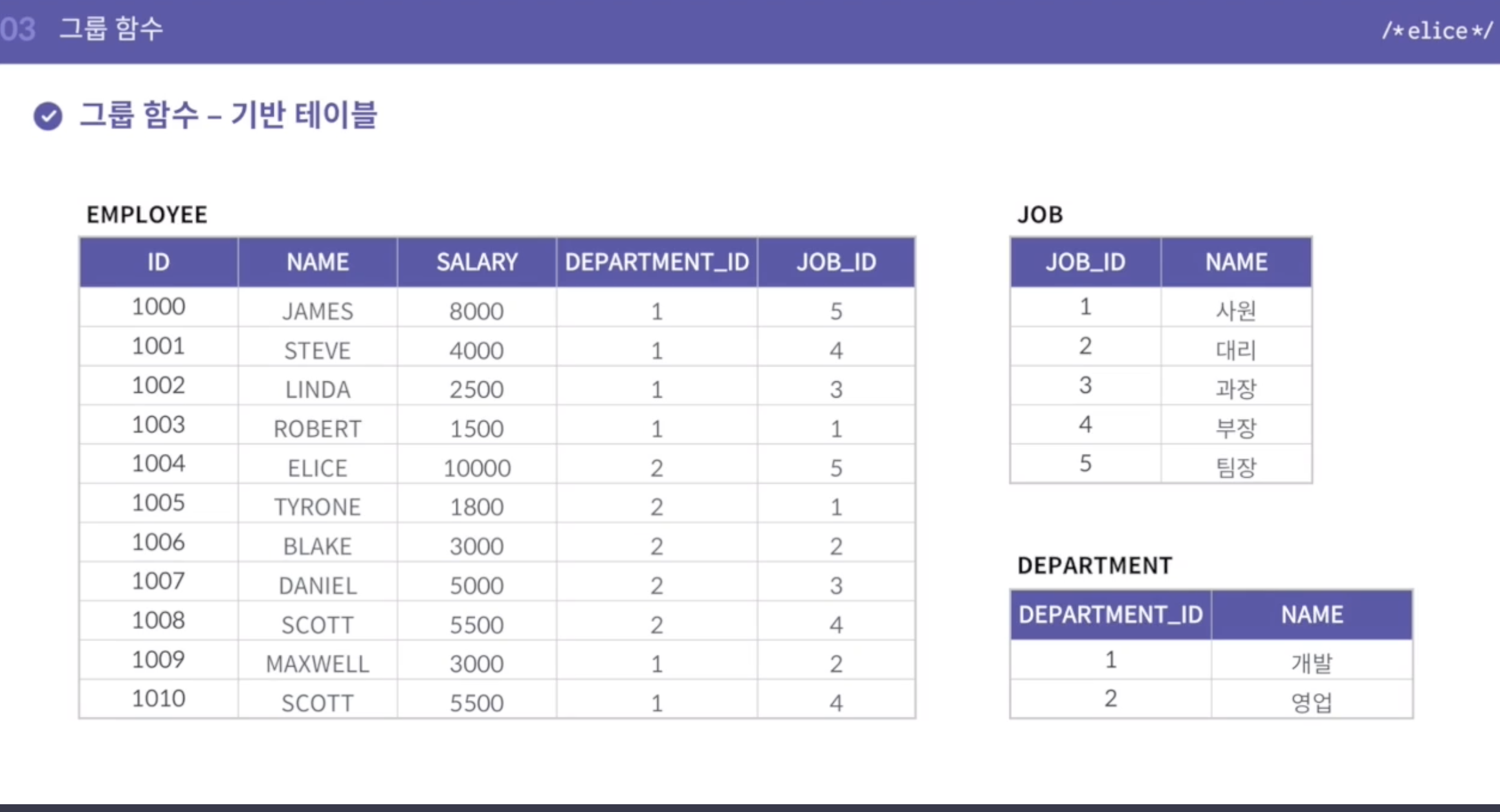 - 분홍: rollup(j.name, d.name)