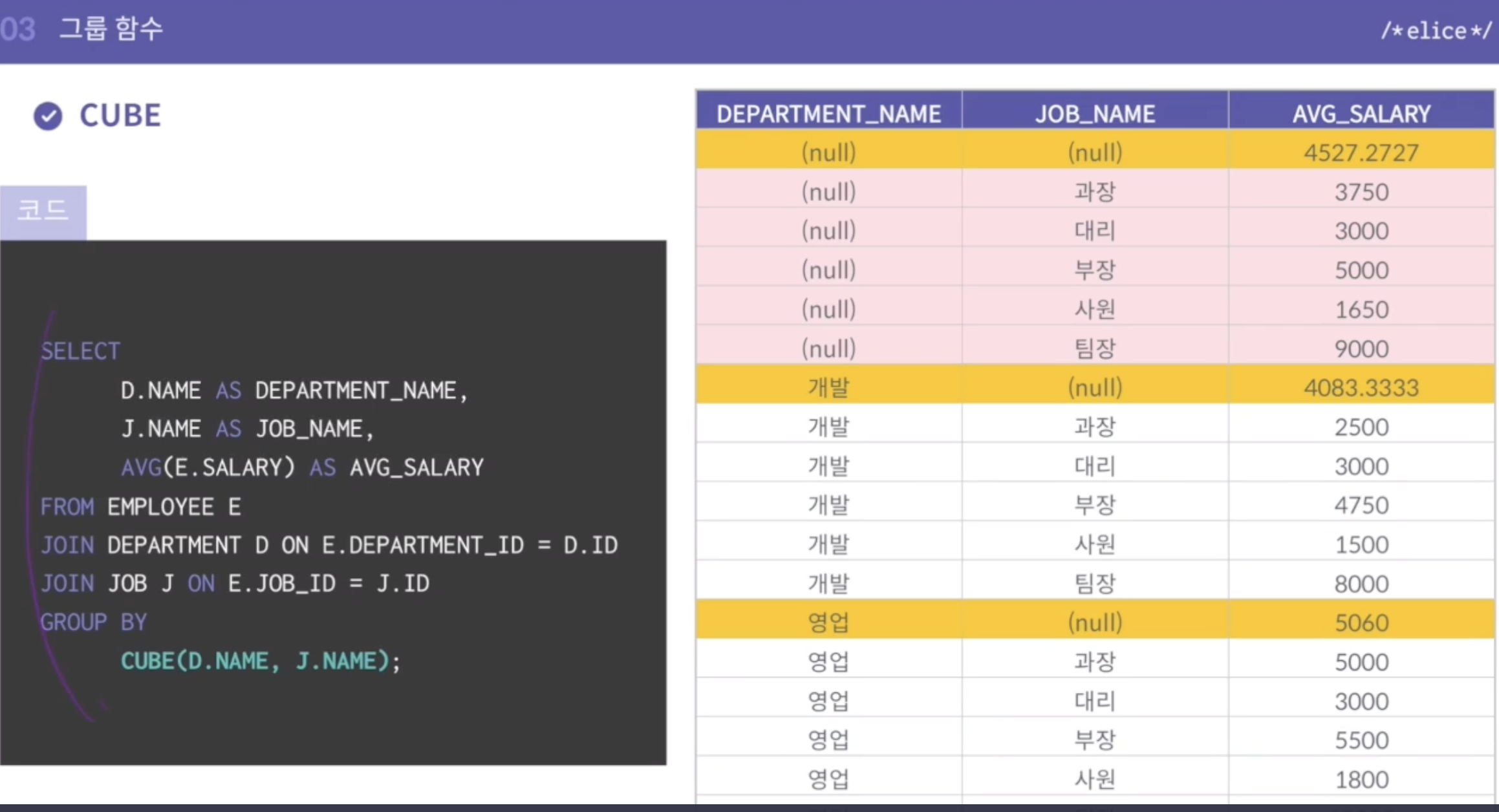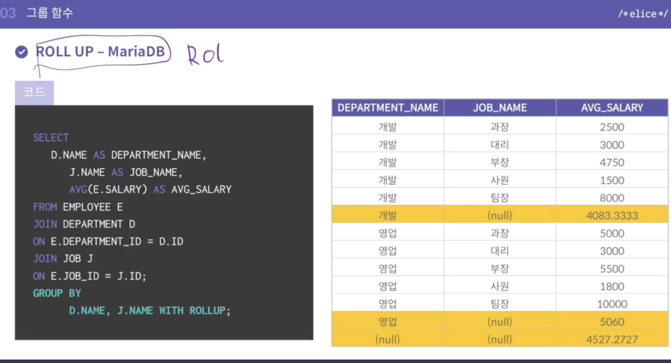 - 노랑: rollup(d.name, j.name)