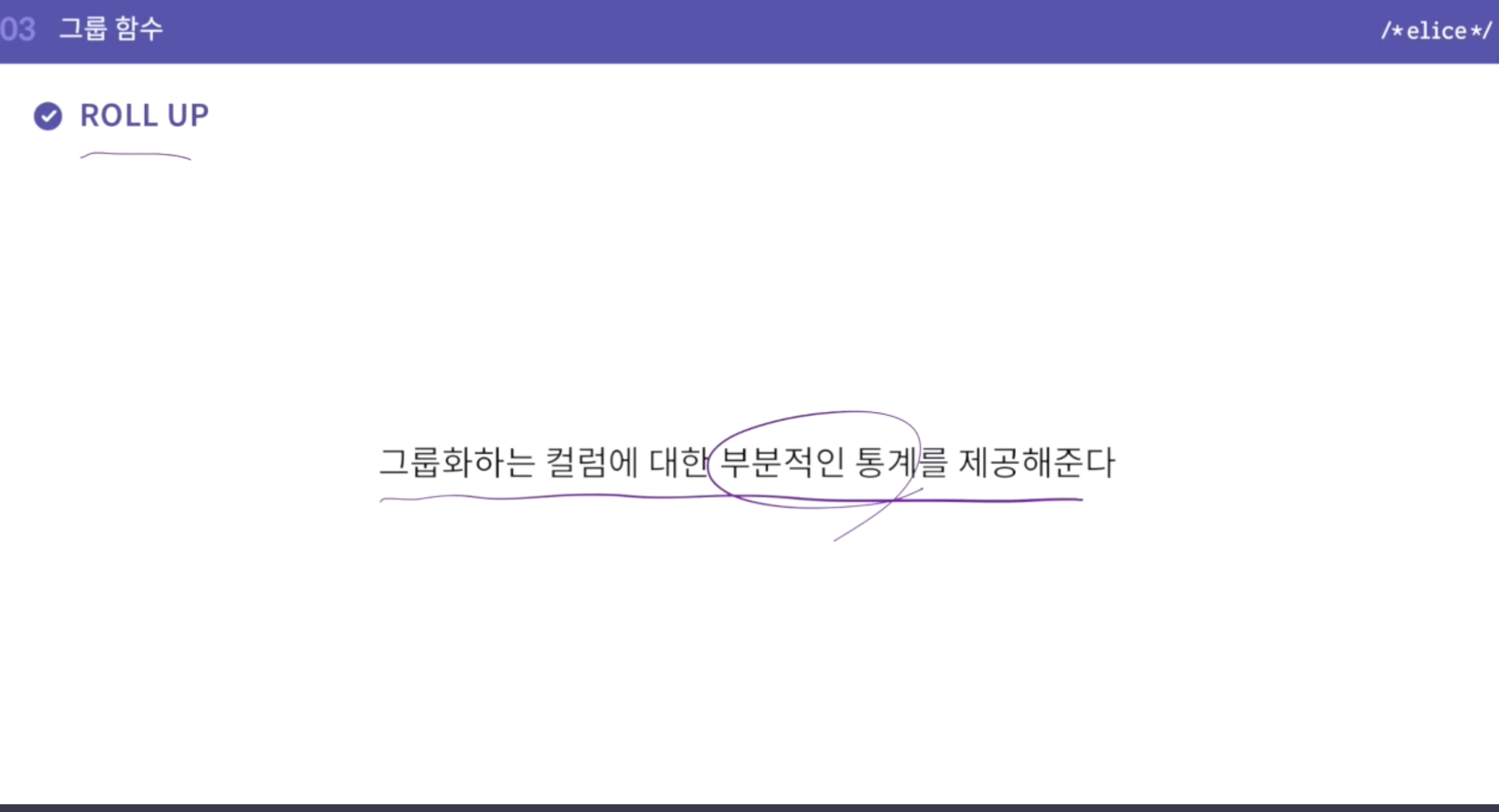 - rollup() 뒤에 오는 컬럼 명 순서가 중요함. 그것을 기준으로 나누는 것 .