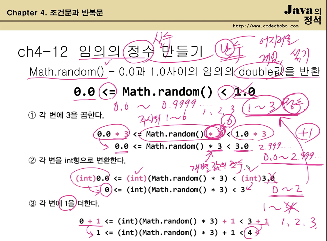 answer = (int)(Math.random() * 100) + 1; // 1~100 사이의 정수를 입력
