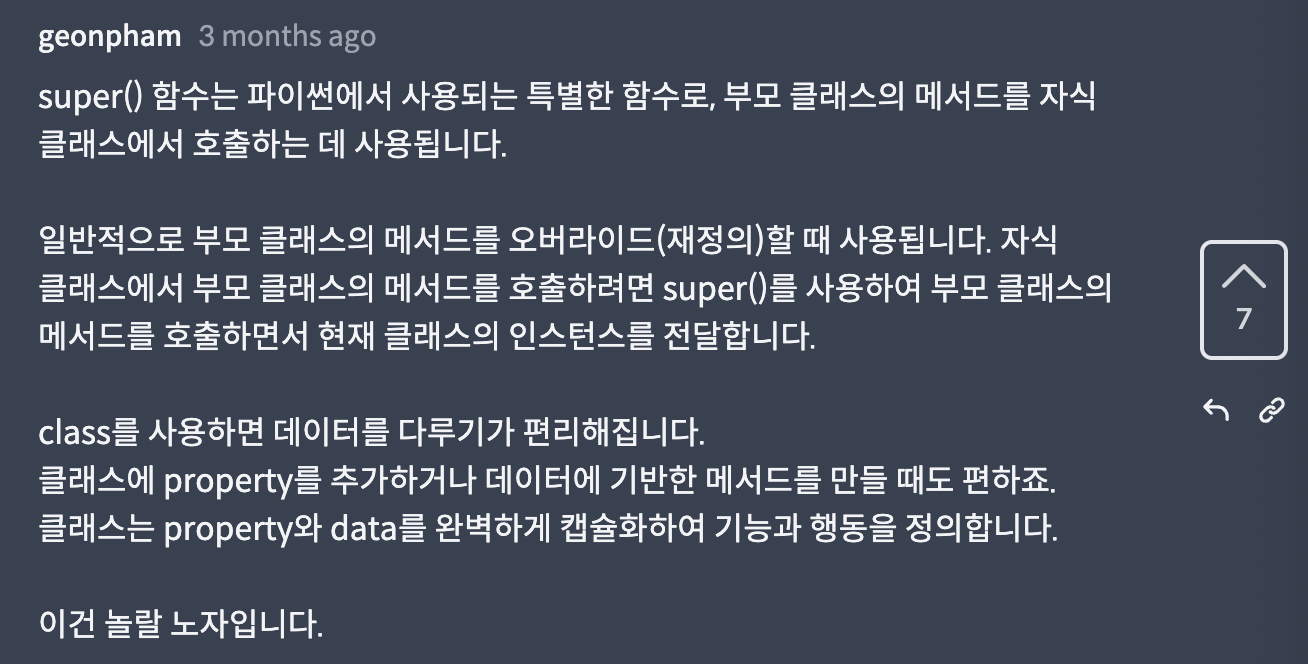 | [python] *를 매개변수 앞에 붙일 때와 아닐 때 (0) | 2024.07.21 |