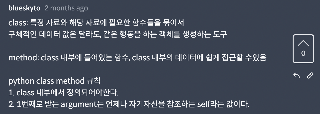 # class 안에 method를 가질 경우, 첫 번째 argument는 자동으로 self임.